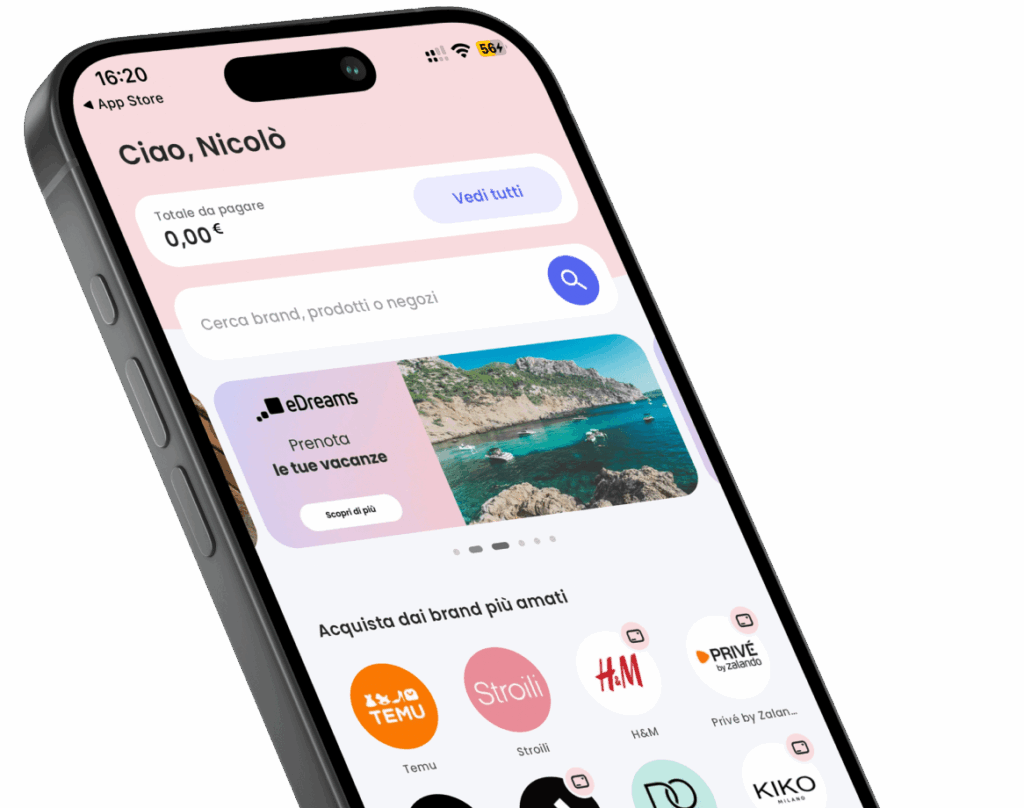 Innovativo metodo di pagamento che ti permette di acquistare nei negozi online e fisici, ricevere il prodotto immediatamente e pagarlo in tutta calma.